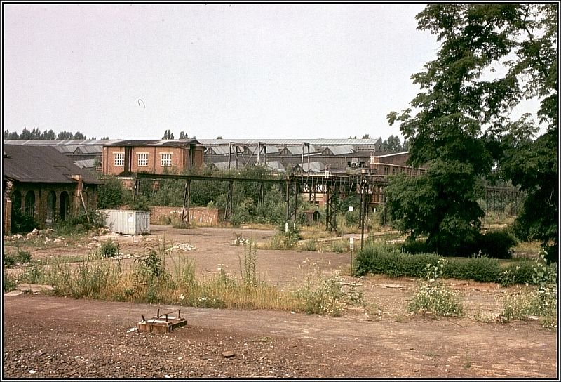 Heute mal was Historisches von mir zum Thema ausgediente Bahnanlagen. Beim Bahnhof meiner Heimatstadt Göttingen gab es seit 1855 ein Eisenbahnausbesserungswerk. Von 1917 bis 1920 wurde dort eine riesige Lokrichthalle gebaut, die zusammen mit der ganzen Anlage nach dem Ende der Dampflok-Ära 1976 stillgelegt wurde. Danach war das Gelände und die Gebäude dem Verfall preisgegeben. Auf diesem eingescannten Dia aus dem Archiv meines verstorbenen Vaters Alfred Schmidt sieht man den Zustand des Geländes und der Lokhalle im Zentrum im Jahr 1983. Thomas Schmidt
