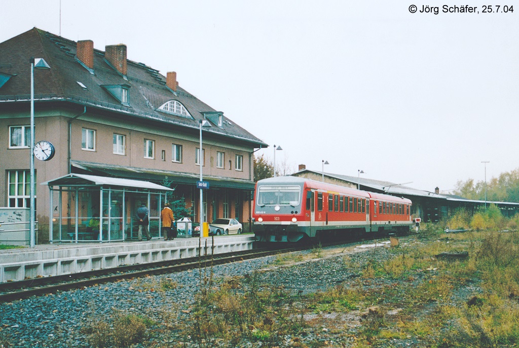 Ja was haben wir denn da Historisches? Ein Sonderzug mit 2x 628.0 in Nordbayern? JA - ca. 1985 kam diese Fuhre nach hier in den Bahnhof Leupoldsdorf bei Wunsiedel. Das Gleis lag sogar noch bis in den über dem Zug sichtbaren Steinbearbeitungsbetrieb. Damals fand hier auch noch Güterverkehr statt. Heute ist, wie üblich, hier alles abgebaut. Schotter kann man noch finden..... Ober franke