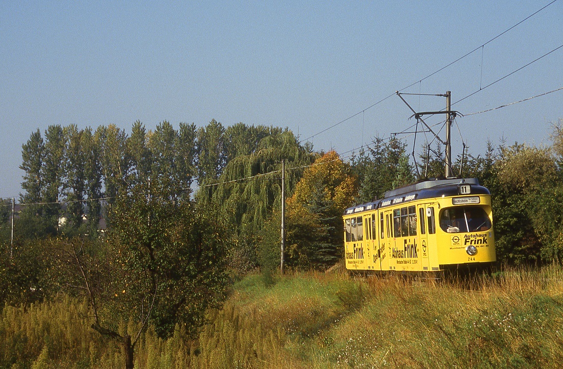 75 Jahre OEG am 18-05-1986 in Mannheim -Käfertal. OEG-Halbzug 45/46 [Fuchs/BBC] von 1928, GT8 Nr.88 [DUEWAG 1966] und GT8 Nr.108 [DUEWAG 1974]. Klaus-Erich Lisk