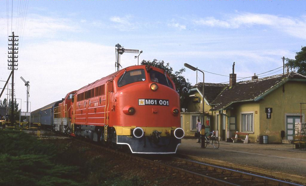 Czopak um 10.00 Uhr die Ausfahrt der M 61002 mit dem Personenzug nach Tapolca. Gerd Hahn
