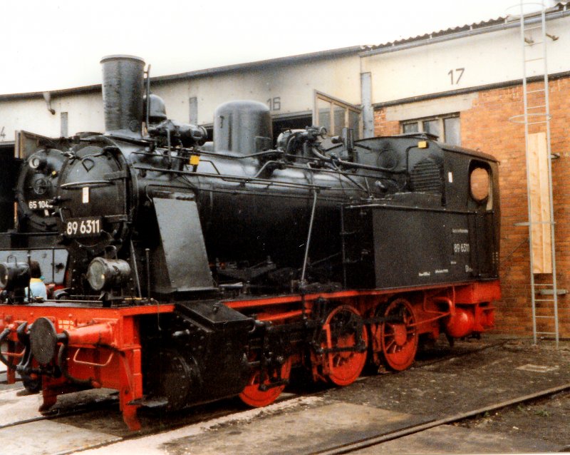89 6311 im Bw (hist.) Arnstadt, um 1988 (POCKET-Aufnahme)
