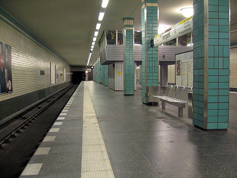 U-Bahnhof Tierpark: Der einzige unterirdische Bahnhof der von der DDR Regierung neu erbaut wurde ! 1973 eröffnet blieb er bis 1988 Endpunkt. Interessant ist die doppelte Stützenreihe und das merkwürdig über der Halle thronende massive Abfertigungshäuschen. C-R