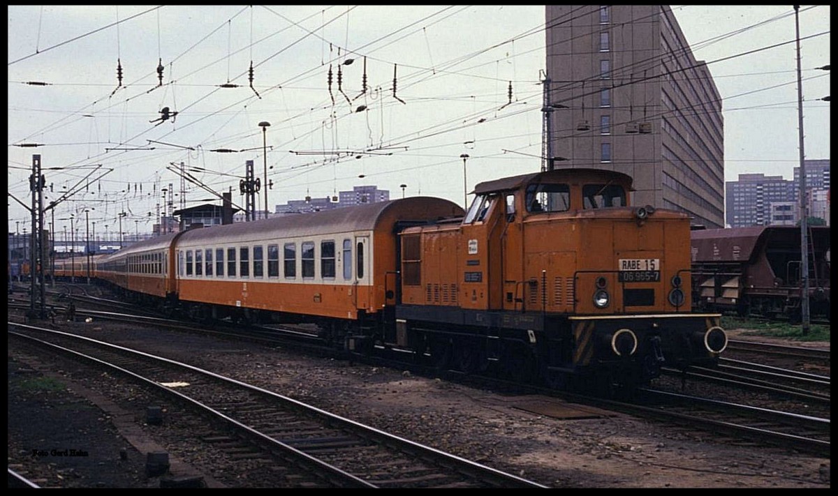 DR 106965 rangiert mit dem Städteexpress Zug am 8.5.1989 im Ostberliner Bahnhof