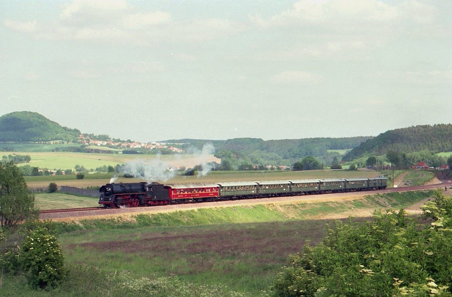 Am 26.05.1990 wurde die seit dem Ende des 2. Weltkriegs stillgelegte Strecke Eichenberg - Arenshausen reaktiviert. 01 1531 fuhr an diesem Tag mit dem Eröffnungszug von Leinefelde nach Eichenberg und ist hier genau auf der Grenze zwischen der DDR und der Bundesrepublik unterwegs. Uwe Busch