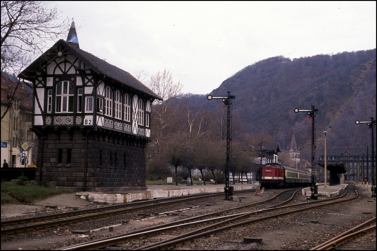 Am 21.3.1991 fotografierte ich es, als im Hintergrund 202534 mit dem P 19435 um 14.20 Uhr im Bahnhof stand. Gerd Hahn