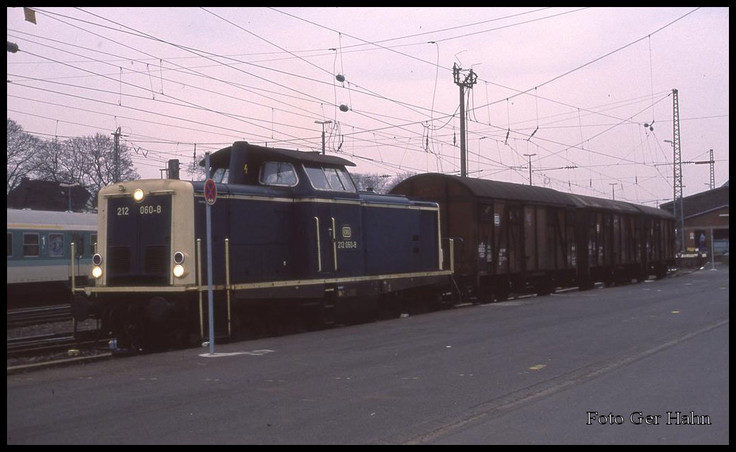 Am 24.3.1993 waren noch "Dampfzüge" in Wuppertal - Elberfeld zu sehen. 212279 mit Dampfkessel Heizung fuhr an diesem Tag mit zwei Silberlingen um 15.58 Uhr in Richtung Solingen ab. Gerd Hahn