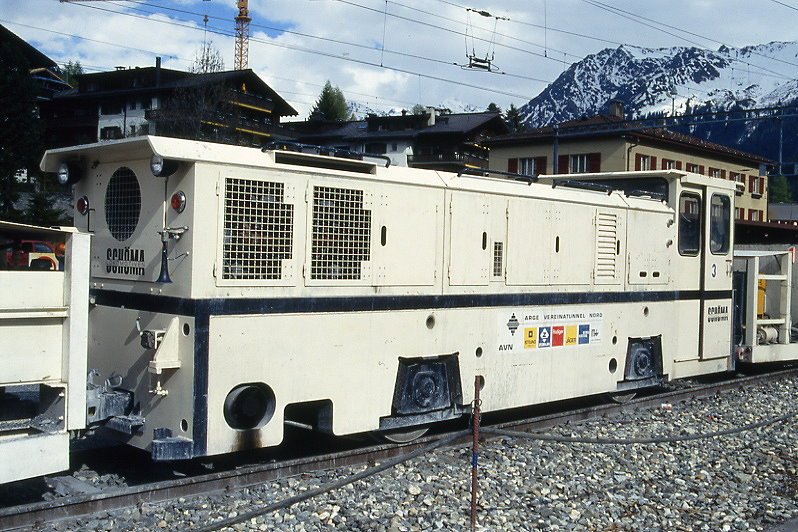 RhB - AVN ArgeVereina Nord Tm 2/2 3 am 13.05.1994 in Klosters - Diesellok - Baujahr 1992 - SCHÖMA 5369 - Typ CFL200DCL - ArGe Zugwaldtunnel - danach AVN ArgeVereinaNord  3