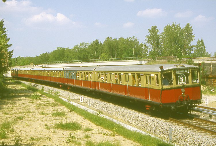 S - Bahn - Musumszug bei der Streckeneröffnung nach Lichterfelde - Ost am 28.5.1995 beim Abzweig Priesterweg.