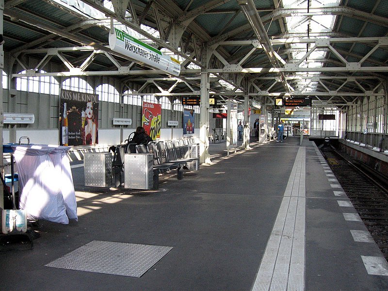 U-Bahnhof Warschauer Strasse: Malerisch an der Oberbaumbrücke gelegen ist sie eine Anfahrt wert !! Von 1961-95 wurde die Anlage durch die Ost-BVB für Strassenbahnen benutzt. Ausserdem diente der Bahnhof noch als Halle für den VEB Taxi und als Gluehlampenwerk. Glücklicherweise wurden Brücke (Gleise entfernt und verwahrlost) und Bahnhof bis 1995 sehr schön restauriert. C-R
