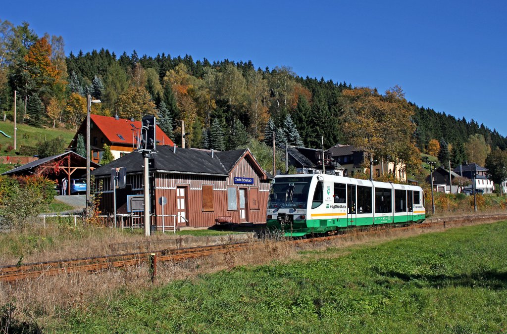 Zum Aufnahmezeitpunkt dieses Bildes war die Bahnwelt im Vogtland noch in Ordnung: 654 035 (VT35) als VBG83146 (Falkenau - ) Graslitz - Zwickau in Zwota, 29.10.010. Kevin Friedel