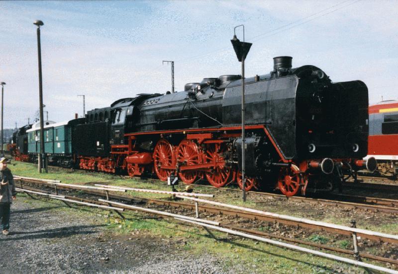 Bilder aus dem Schuhkarton auf bestem ORWO-Color. Die älteste erhaltene Dampflokomotive der Baureihe 01 ist die 01 005. Hier ist sie im Herbst 2001 zum Eisenbahnfest im Traditions-Bw Staßfurt zu sehen. René Richter