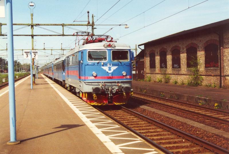 Am 13.05.2001 erreichte Rc6 1395 von SJ Resor AB mit dem IC 611 von Göteborg C nach Malmö C. Ängelholm liegt an der Westküstenbahn nördlich von Helsingborg in Skåne. Hier gibt es ein Museum von Banverket und enden die Lokalzüge (Pågatåg) aus Malmö. Olaf Just