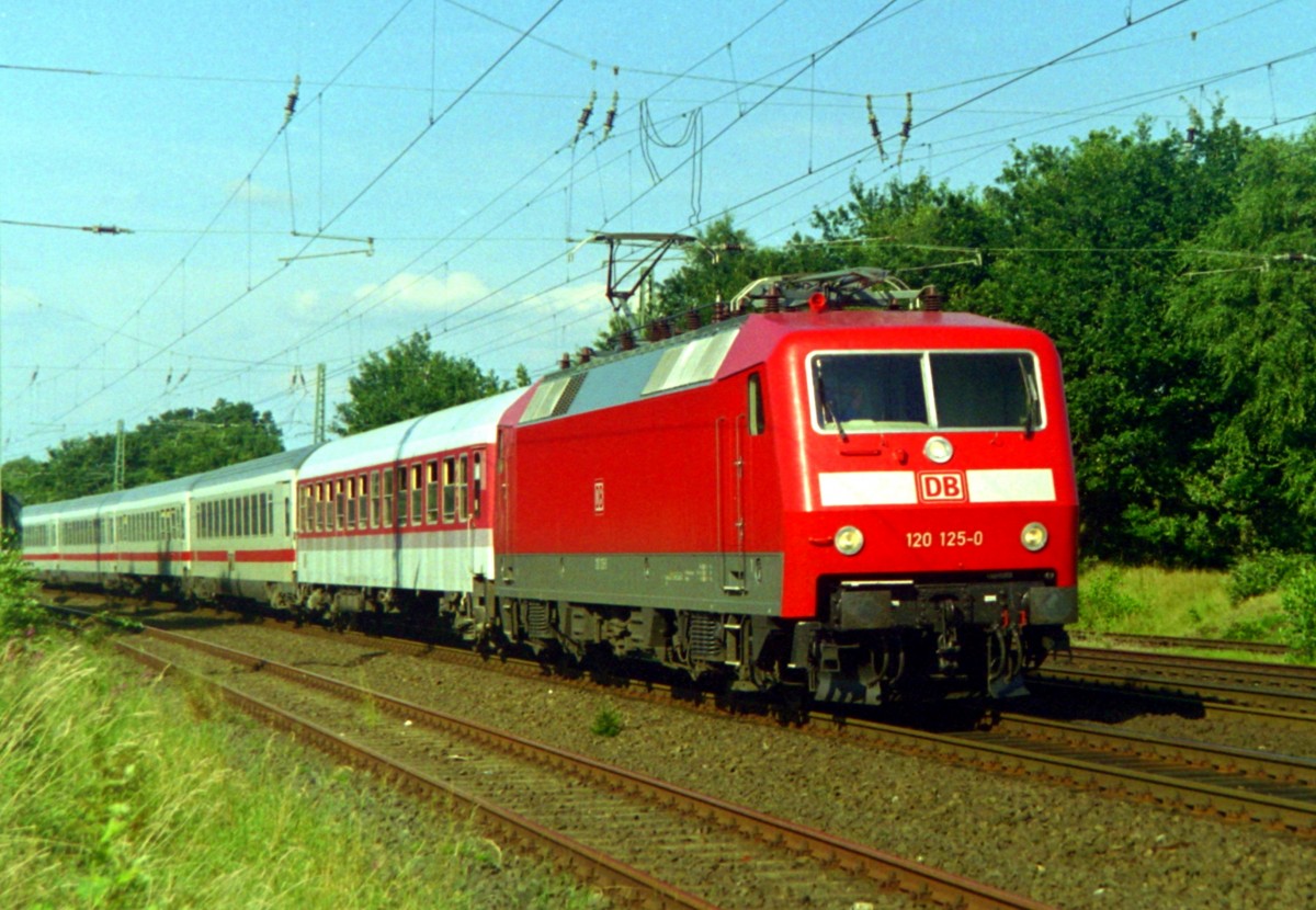 120 125 mit IC 603 "Johann Adolf Hasse" (Hamburg–Köln) am 16.08.2002 in Klecken