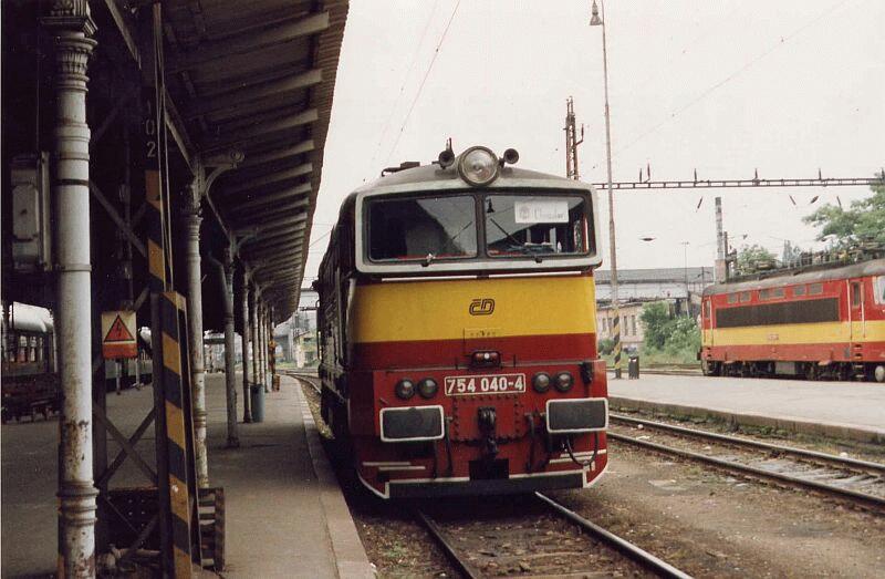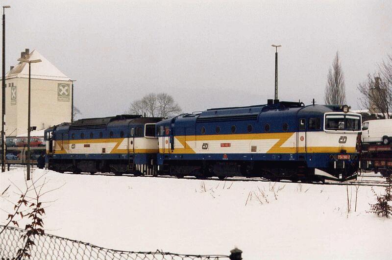 Zwei BR 754, eine davon 754 060, im Januar 1999 im Grenzbahnhof Furth im Walde. Sie hatten kurz vorher einen EC Prag - Nürnberg aus Tschechien gebracht. Günther Glauz
