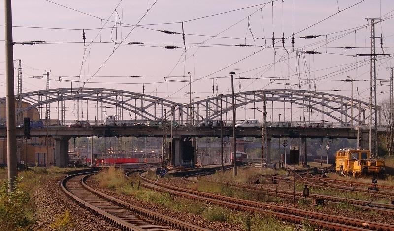 Bahnhof Eberswalde Hbf im September 2003. Die schöne Straßenbrücke gibt es inzwischen nicht mehr.