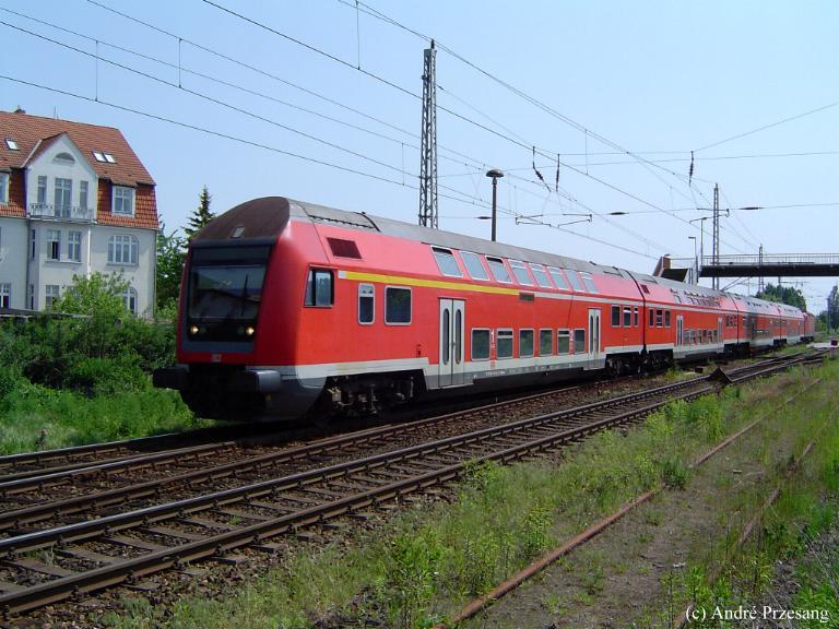 Steuerwagen der Gattung DABbuzf778 mit einem RE bei seinem Aufenthalt im Greifswalder Hbf am 08.05.03. Als Schublok diente die 143 092, welche den Express kurze Zeit später nach Stralsund schob. André Przesang