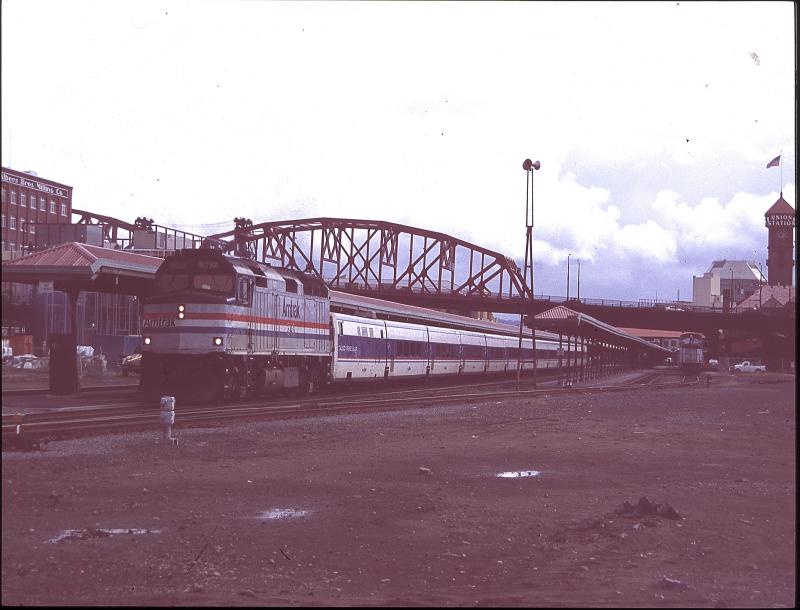Für den Schnellverkehr Portland - Vancouver beschaffte die Amtrak Talgo Züge aus Spanien, hier in Portland Union Station (Sommer 96) Dietrich Seegers