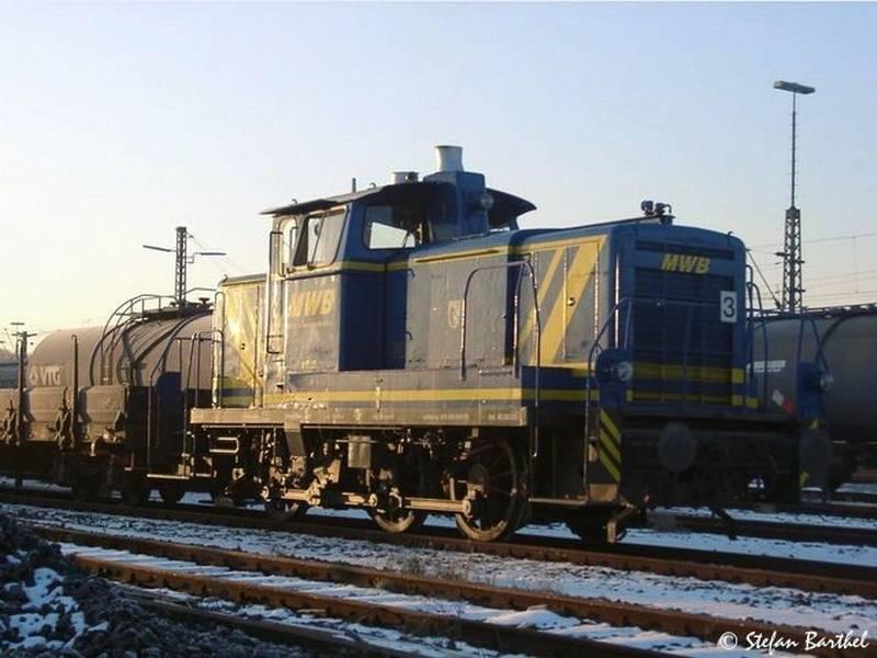 MWB Mittelweserbahn V 664 ex DB 260 608-4, ex V 60 608 (V60) am 31.05.2004 noch im Besitz der MWB im Wanne-Eickeler Hauptbanhnhof. Es ist doch schön zu sehen, daß Lokomotiven aus den 60-er Jahren noch so gut erhalten bleiben/werden. Die blaue Lackierung steht ihr gut, wenngleich mir die originale Farbgebung in dunkelrot natürlich noch besser gefallen würde. Wolfgang Koenigsfeld