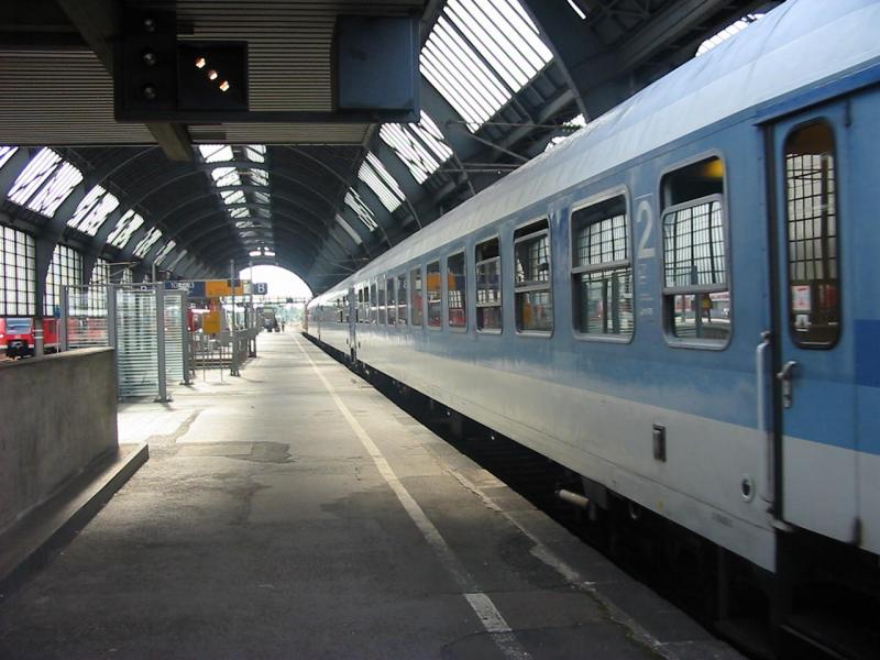 Alte Interregiowagen am 9.8.2005 in Karlruhe Hbf, diese Züge fahren zwar nur alle 2 Stunden aber es gibt noch Interregios sie heißen halt IRE. Sascha Götz