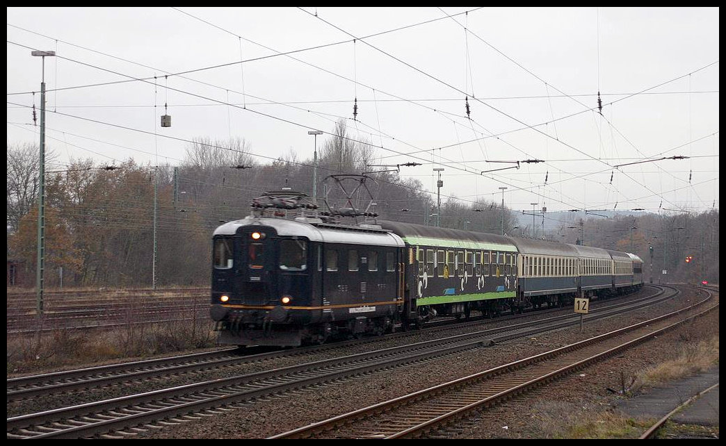Am 11.12.2005 kam ein Centralbahn Sonderzug in Form des DPE 91220 mit einer alten Re 4-4 ex SBB in Richtung Norden fahrend um 9.25 Uhr durch den Bahnhof Hasbergen. Gerd Hahn