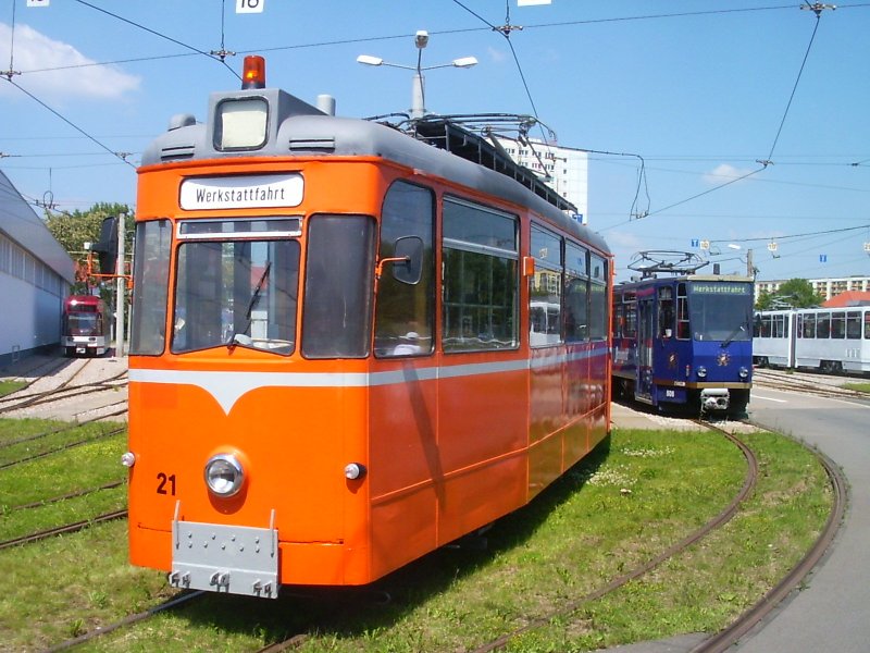 Strassenbahnzug Typ Gotha bei Sonderfahrt in Erfurt, umgebaut als Dienstwagen mit Schneepflug. Die Beförderung der Fahrgäste erfolgte im Beiwagen, 2006 ERHARD BEYER
