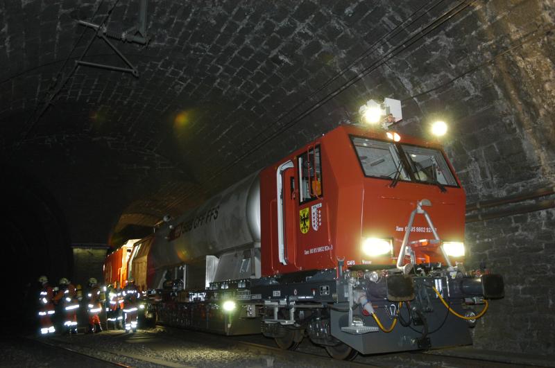 Infolge eines Kabelbrandes um etwa 6.00 Uhr Morgens am 24.10.2006 an der Infrastruktur der BLS zwischen Hohtenn und Goppenstein musste der neue Lösch- und Rettungszug aus Brig ausrücken um den Brand zu löschen. Um 10.30 Uhr kam er von seinem Einsatz zurück. Ich lichtete ihn unterhalb des Bahnhofs Lalden ab. Lukas Buchmeier