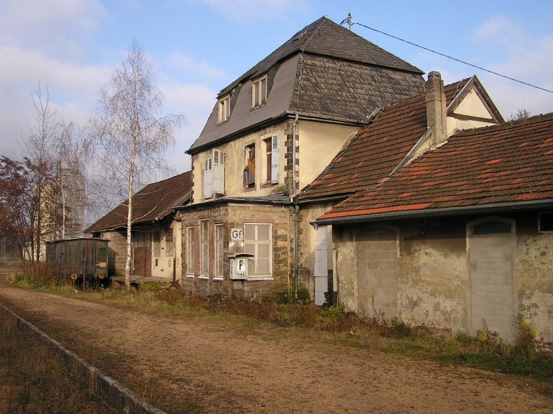 Bahnhof Großrosseln (Saar) am 08.12.2004. Der Bahnhof liegt nur einen Steinwurf von der Deutsch-Französischen Grenze entfernt. Das Stellwerk (GF) wurde 2006 abgeschaltet. Martin Pöhlmann