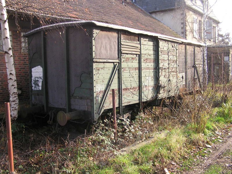 DB Gerätewagen (Verbandsbauart) 30 80 945 4 607-1 am 08.12.2004 im Bahnhof Großrosseln (Saar). An einem Radlagerdeckel ist die Jahreszahl 1913 eingegossen. Martin Pöhlmann