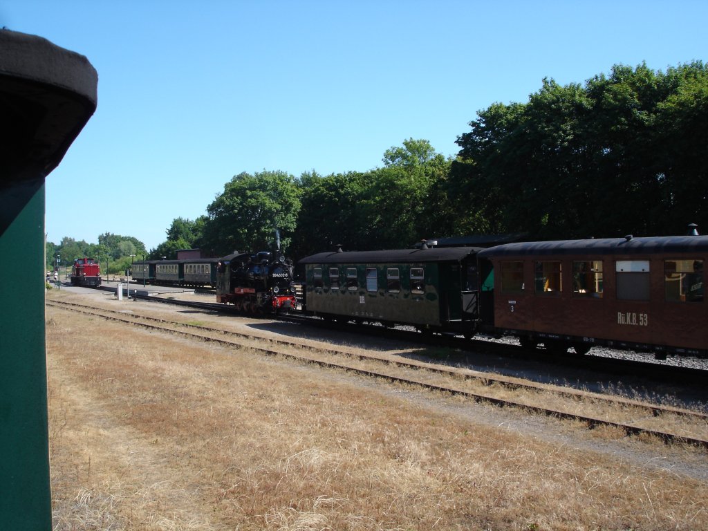 Schmalspurbetrieb im Bahnhof Putbus/Rügen, Juli 2006