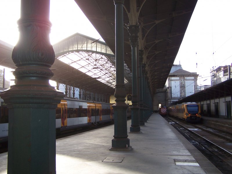 Zwei Triebzüge BR 3400, links nach Penafiel, rechts nach Porto Sao Bento am 09.05.2006 im Bahnhof Porto Campanha, diese Züge fahren von Sao Bento auf vier Linien nach Aveiro, Braga, Caide und Penafiel, sie werden als "Urban" bezeichnet, eine Art S-Bahn. Günther Glauz