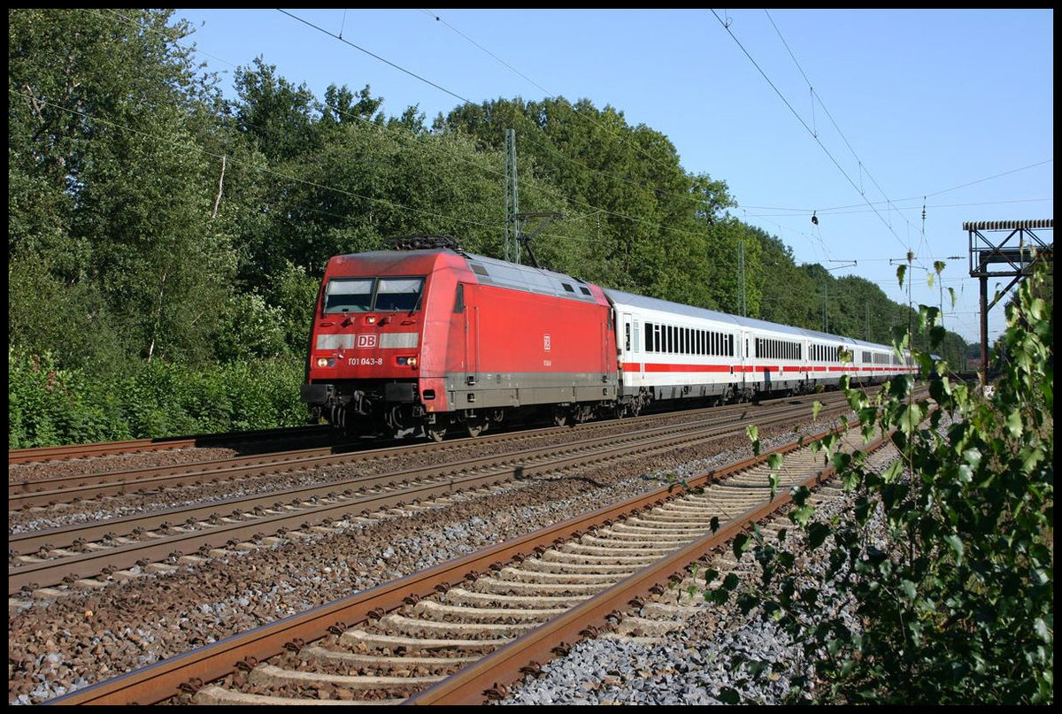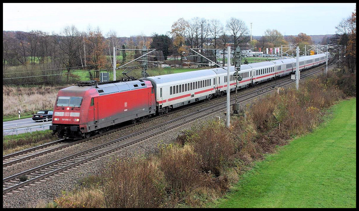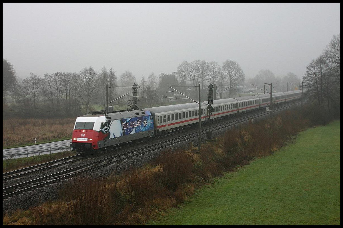 Im trüben Morgen Nebel des ersten Weihnachtstages kommt hier am 25.12.2006 Adler Mannheim in Form der 101070 mit dem IC 2113 nach Passau durch Hasbergen. Trübe verregnete Weihnachten gab es schon damals! Gerd Hahn