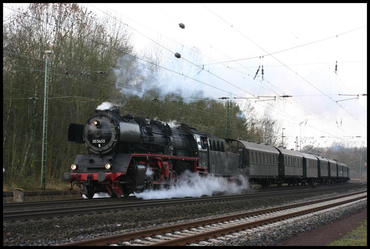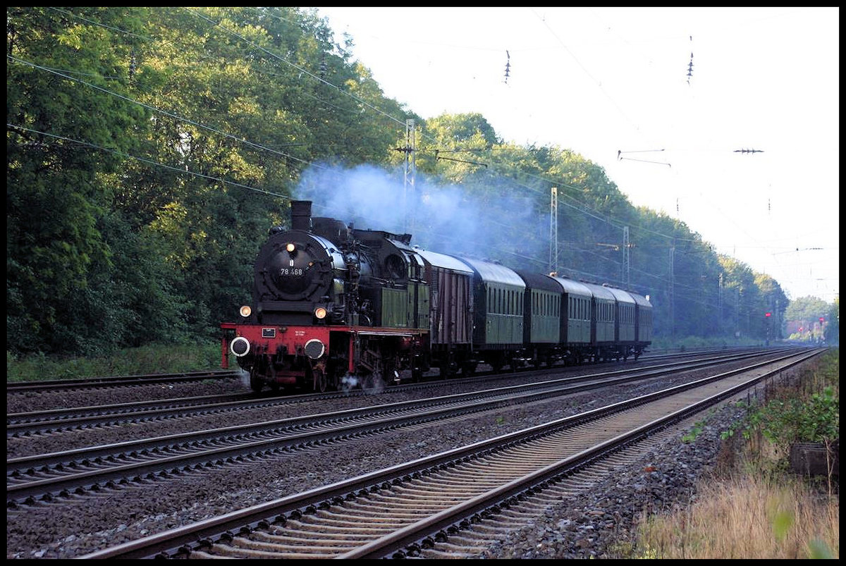 Hier kommt die 78468 mit ihrem historischen Zug von Osnabrück nach Lengerich durch den Bahnhof Natrup Hagen. Gerd Hahn