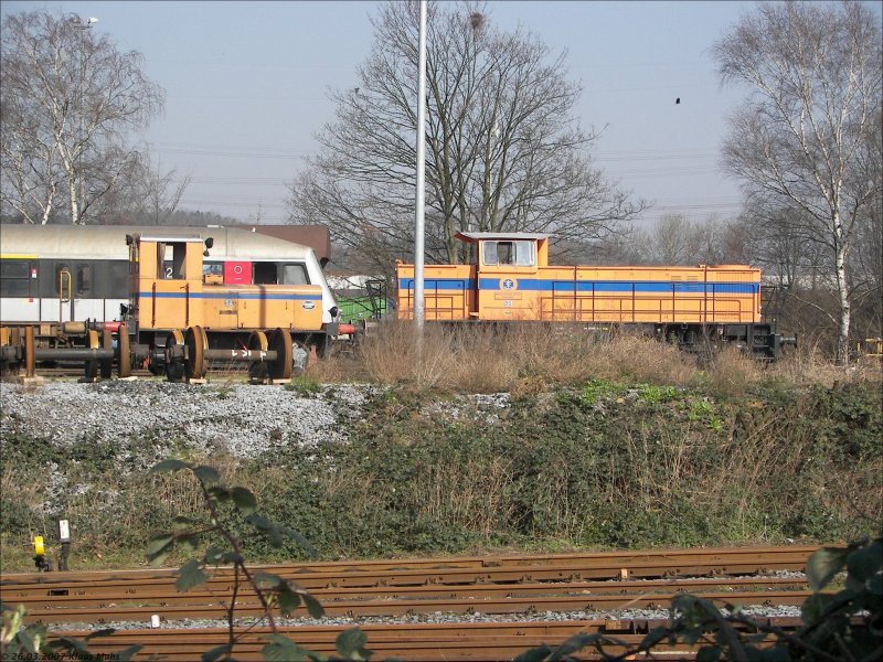 Lok 12 (Deutz KS55B/1952), ein Abellio-Steuerwagen und Lok 25 (MaK G1202BB/1079) auf dem Betriebsgelände der Wanne-Herner Eisenbahn. 26.03.2007 Klaus Muhs