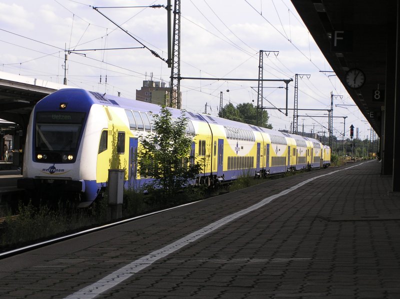 In Kürze schiebt die ME 146-17 ihren metronom nach Uelzen über Northeim - Kreiensen - Elze - Hannover. Aufnahme in Göttingen am 08.07.2007