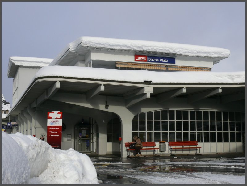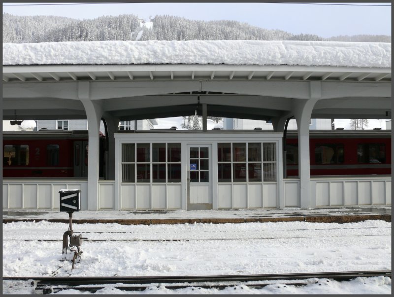 Ge 4/4 II 613 "Domat/Ems" führt den RE nach Davos Platz und hat Halt auf Verlangen in Davos Laret, das dem Namen als Schneeloch alle Ehre macht. (12.11.2007) Herbert Graf