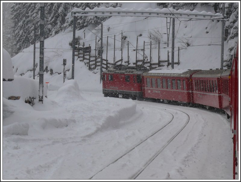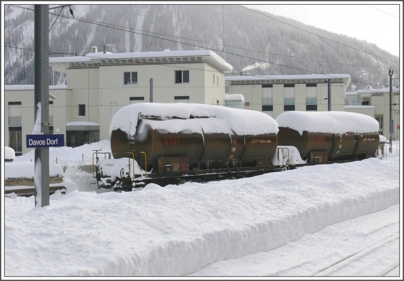 Im Landwassertal liegt eine ganze Menge Schnee, gemäss dem eidgenössischen Schnee- und Lawineninstitut Davos fiel die grösste Menge Schnee im November seit mehr als 50 Jahren. Da ist Heizoel ein wichtiges und auch immer kostbareres Gut, das die RhB bei fast jedem Wetter anliefert. (12.11.2007) Herbert Graf