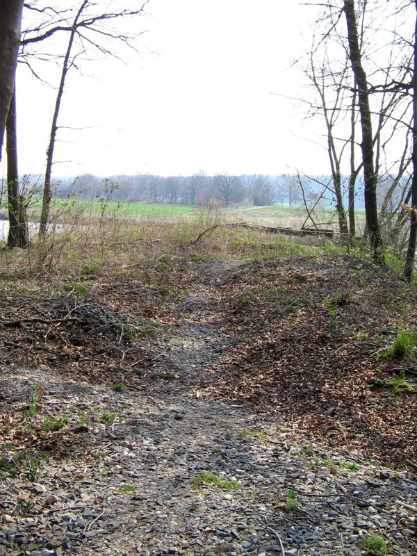 Am östlichen Muldenufer in Grimma findet man den Bahndamm der Muldentalbahn noch. Unter anderem sind noch durchbrüche vorhanden. Hier liegt sogar noch eine Holzschwelle... oder liegt sie nach dem Hochwasser 2002 neuermaßen hier? 01.04.07 Kai Gläßer