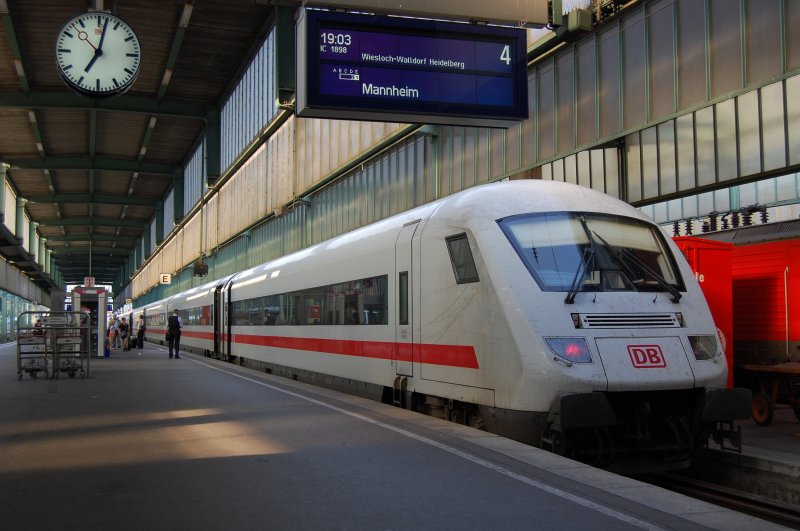 Ein Ex-Metropolitan-Steuerwagen des IC 1898 von Stuttgart HBF nach Mannheim steht am 05.08.07 mit einer Ex-Metropolitan-Garnitur und der 101 126 auf Gleis 4 des Stuttgarter HBFs. P.F.