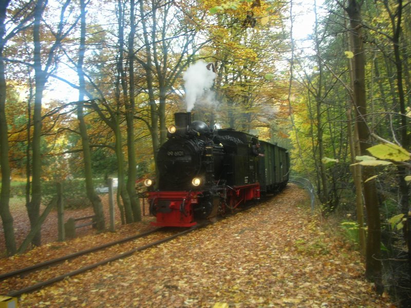 Und Kurz danach folte der "Kristallexpress", der Ig-HSB von Nordhausen mit der Zuglock 99 6101, einem Packwagen, 2 Personen und dem Salonwagen, 2.2.2008 Maximilian Schmidt