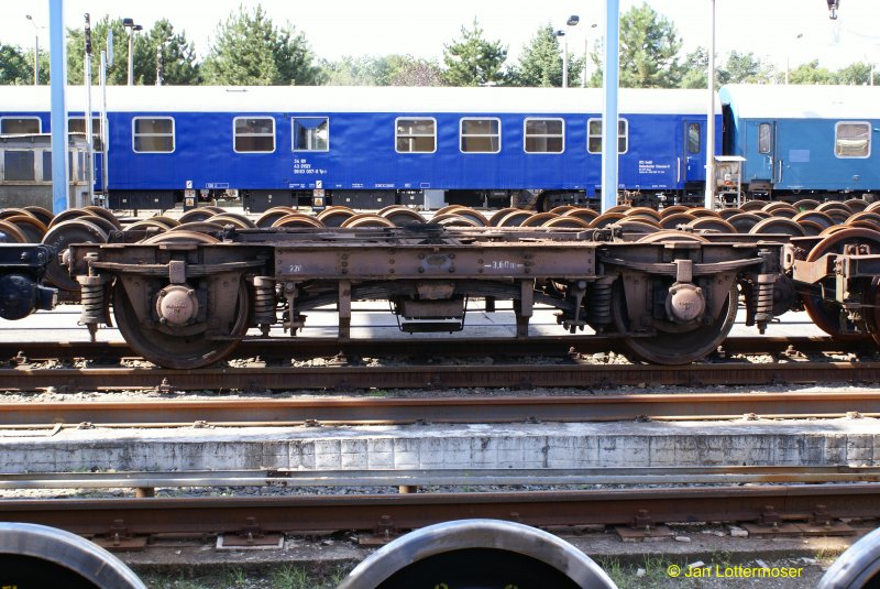 30.08.2008. Das Drehgestell eines alten Personenwagens vor seiner Aufarbeitung im "SFW Schienenfahrzeugwerk Delitzsch GmbH" anlässlich der 100 Jahr Feier. Lottermoser
