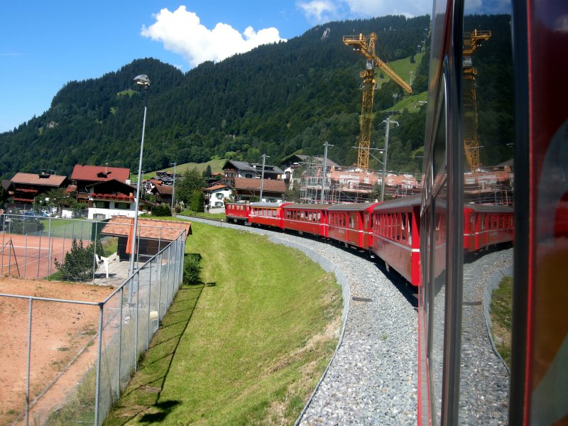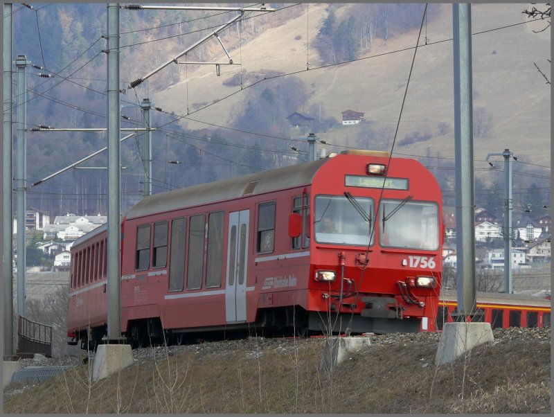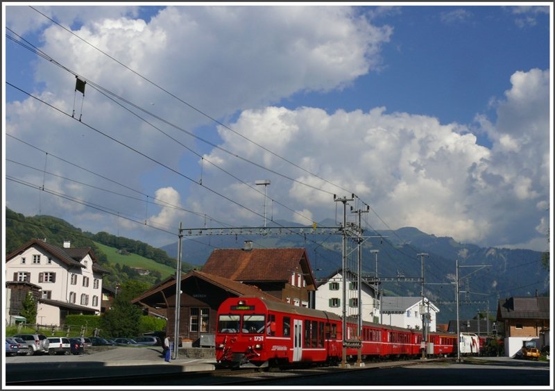 Steuerwagen 1751 führt den RE aus Davos Platz nach Landquart. Hier fährt er soeben in Grüsch ein. Im Hintergrund der Stelserberg. (27.08.2008) Herbert Graf