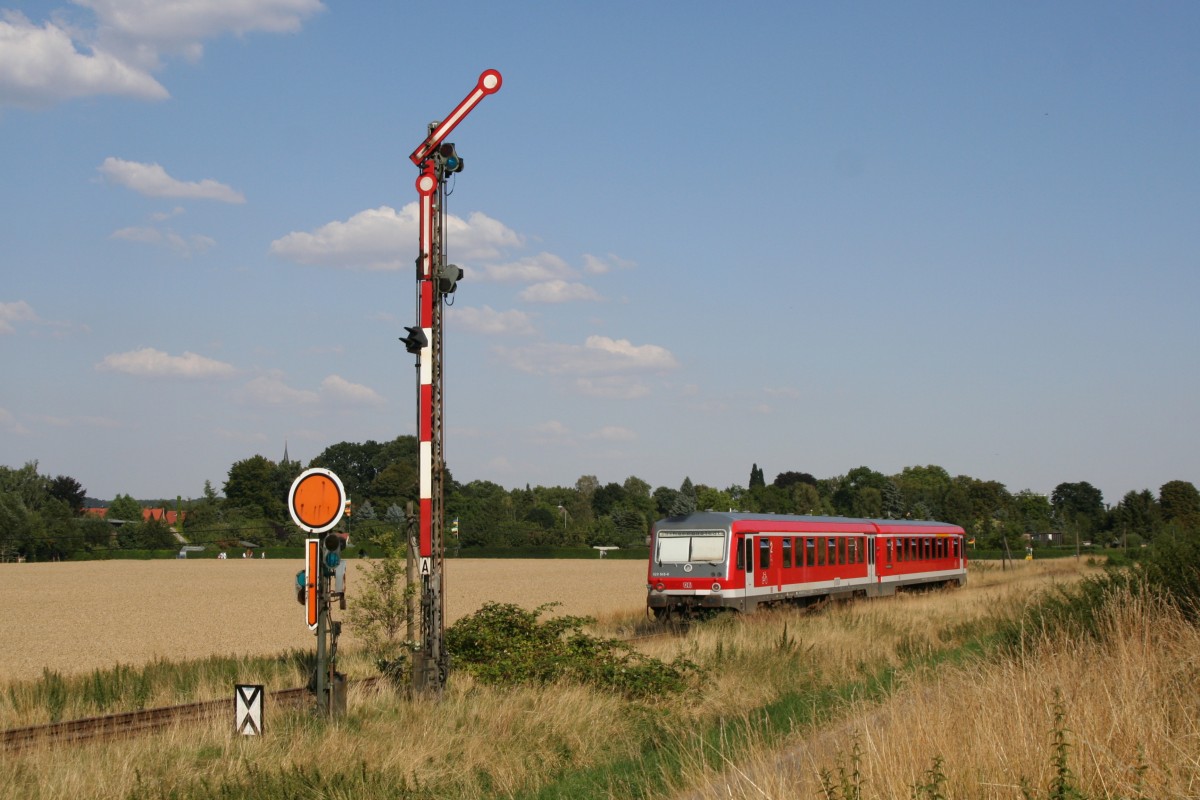 Aus Richtung Lübeck, Schönberg/Meckl. fährt RE 21623, bestehen aus den Triebwagen-Einheiten 628 637 und 207 in den Bahnhof Grevesmühlen ein. [20.09.2008] Manfred Hellmann