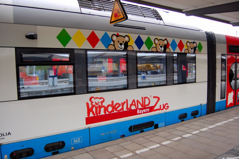 Der "Kinderlandzug" der bayrischen Oberlandbahn, scherzhaft "Windelbomber" genannt, erreicht in wenigen Sekunden München Hauptbahnhof. Helmut Dimitroff