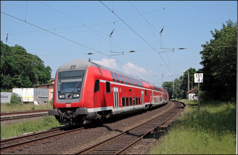 RE7 (RE 29729)  Rhein-MÜNSTERLAND-Express , nach Krefeld Hbf, durchfährt am 08.06.2008 den ehemaligen Bahnhof Westhofen.
