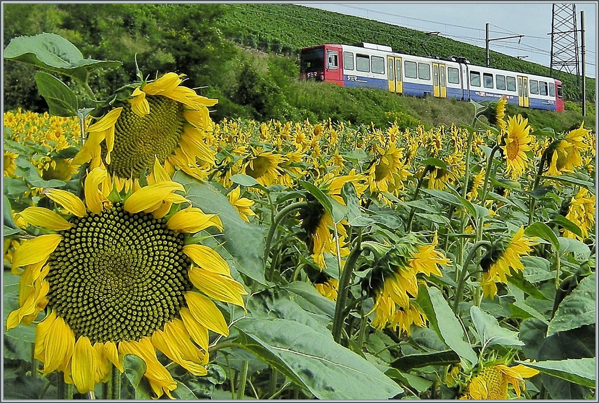 Der SBB Bem 550 004-6 "La Grôle" ist als RER 96743 zwischen Russin und Satigny unterwegs und auf dem Weg nach Genève. Ein Foto auf dem Regionalfahrplan Genève - La Plaine - Bellegarde hatte mich an diese Fotostelle gelockt, doch die Profiaufnahme auf dem Regionalfahrplan entstand für mich unerreichbar auf der gegenüberliegenden Gleisseite.