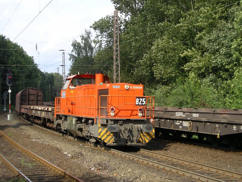 825 der RBH (VL 2006/5001569 G1206 1500 kW angemietet von MRCE) erreicht mit einem kurzen GZ in kürze den Gbf Gelsenkirchen Bismarck. 9.9.08 Michael Berling