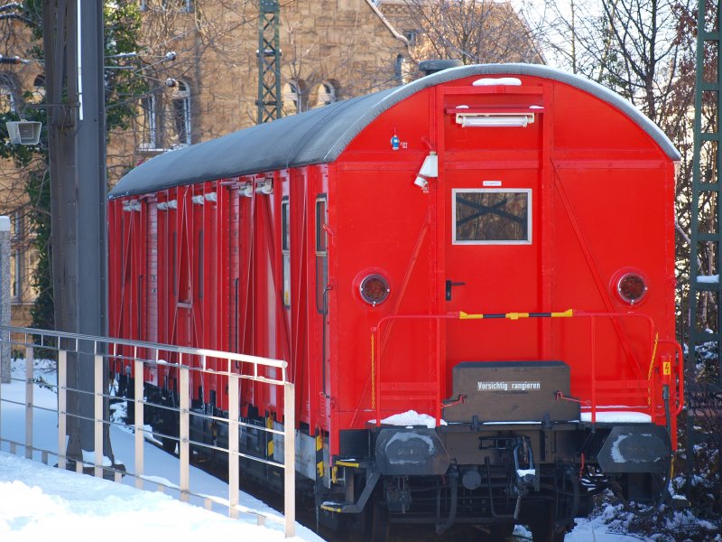 Der Einheitshilfsgerätewagen 60 80 991-11 061-1 leuchtet am 08.01.2009 knallrot in der Wintersonne am verschneiten Aachener Hauptbahnhof Mario Schürholz