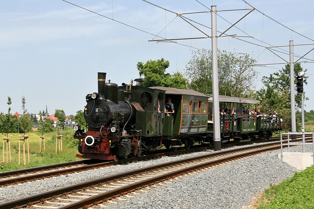 Dampftram Darmstadt am 24.05.2009 -- Der Dampfzug befindet sich nun auf der Strecke kurz vor der Einfahrt in die Straßenbahn-Endstation Am Hinkelstein in Alsbach. -- Weitere Fotos von der Darmstädter Dampfstraßenbahn siehe auch in meinem http://www.schmalspuralbum.de/ Walter Brück