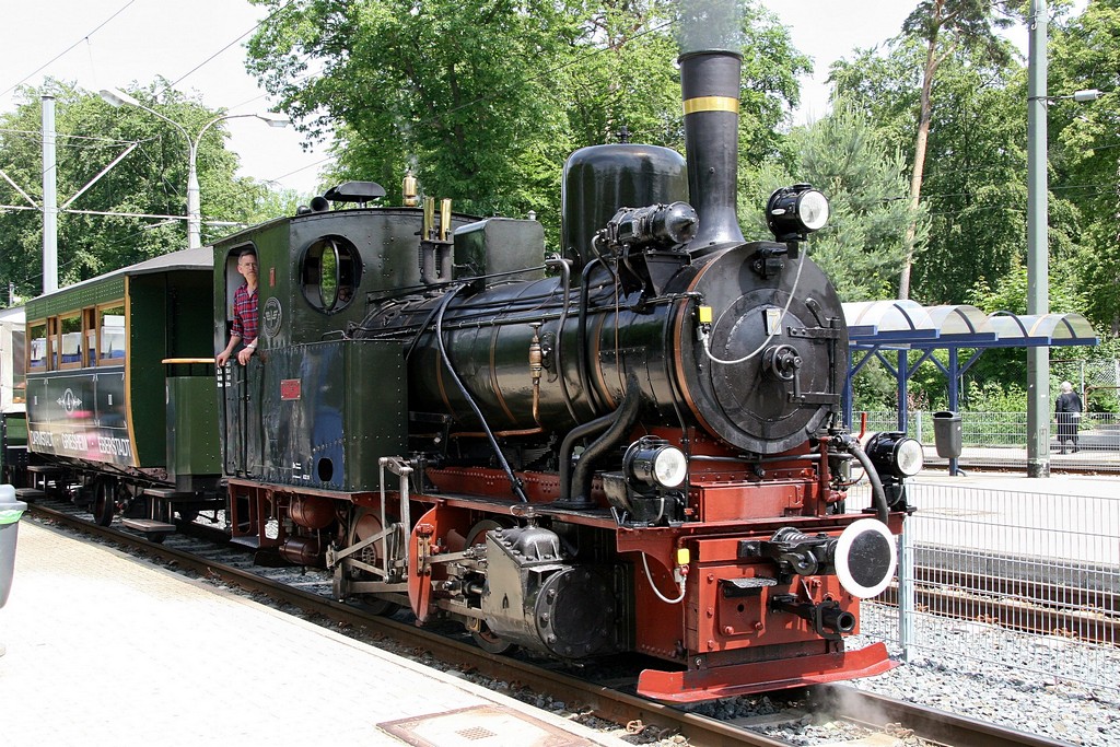 Dampftram Darmstadt am 24.05.2009 -- Die Dampflok wartet mit ihrem Zug am Wasserkran in Eberstadt auf die Weiterfahrt nach der Mittagspause. -- Weitere Fotos von der Darmstädter Dampfstraßenbahn siehe auch in meinem http://www.schmalspuralbum.de/ Walter Brück