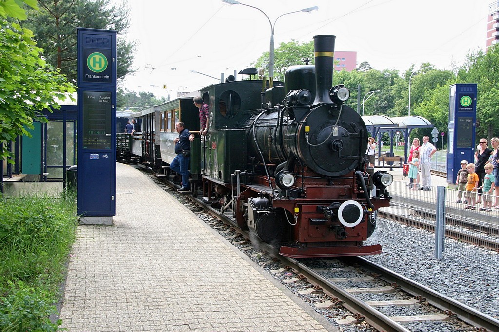 Dampftram Darmstadt am 24.05.2009 -- Soeben fährt der Dampfzug aus der Station Frankenstein Richtung Alsbach aus. -- Weitere Fotos von der Darmstädter Dampfstraßenbahn siehe auch in meinem http://www.schmalspuralbum.de/ Walter Brück
